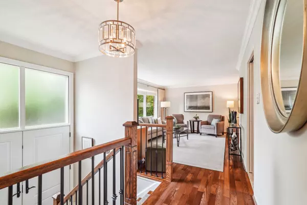 Situated in prestigious Southeast Oakville in one of the area's top school districts, this beautifully maintained raised bungalow rests on a mature tree-lined lot with excellent exposure. Sunlight pours into the open-concept living and dining area through a stunning wall-to-wall bow window, while sliding glass doors provide effortless access to the two-tiered deck and private, fully fenced backyard, perfect for entertaining indoors or out. The stunning custom kitchen offers a picturesque view of the backyard and showcases gleaming quartz countertops, stainless steel appliances, and an abundance of cabinetry for optimal storage. The main level is finished with rich dark hardwood flooring, crown moulding, three generously sized bedrooms, and tastefully updated bathroom. Retreating down the hardwood staircase, the lower level offers a spacious and inviting family/rec room with a gas fireplace, custom built-ins & wainscotting, and another impressive bow window. Additional highlights include a versatile office or fourth/guest bedroom with a Murphy bed, a second updated full bathroom, an oversized laundry area, and convenient inside entry from the garage. Exterior features include elegant armour stone steps, interlocking pathway, professionally landscaped retaining walls and manicured gardens (2018). Ideally located close to top-rated schools, shopping, highways, churches, and the lake, this exceptional home offers the perfect blend of comfort, style, and location.